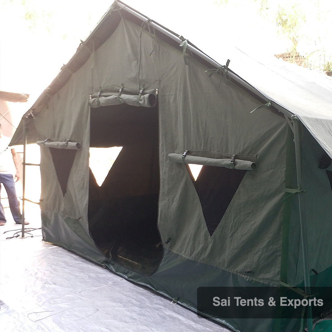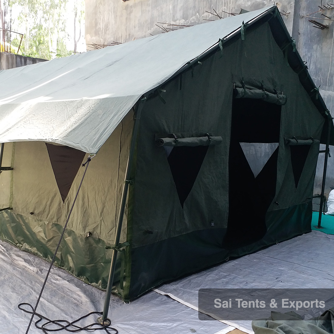 All kinds of Frame and Army tents are manufactured and supplied by us. Sai Tents are one of the renowned producers of all types of tents including Army and Frame tents used for shelters. The high class fabric tents are available with us as per the standards set by Govt. of India to provide a quality canvas for Officers and Jawans of Armed Forces. The tents provided by us are suitable for all kinds of weather and atmospheric conditions and are appropriate for luxury needs as well.