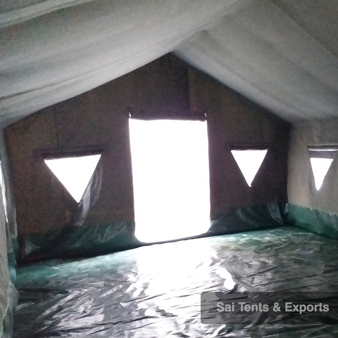 Different kinds of color combinations are available so to suit the requirement for security purposes of specific area. Sai Tents Suppliers and exports uses best quality of raw material which is strong, resistant to wear and tear and have water repellent features. That’s not it; these frame tents are 100% insect proof and are aesthetically stitched to provide proper air ventilation and Air conditioning. The tents provided by us can withstand adversities of weather, furors of rainstorms and callous sunrays.