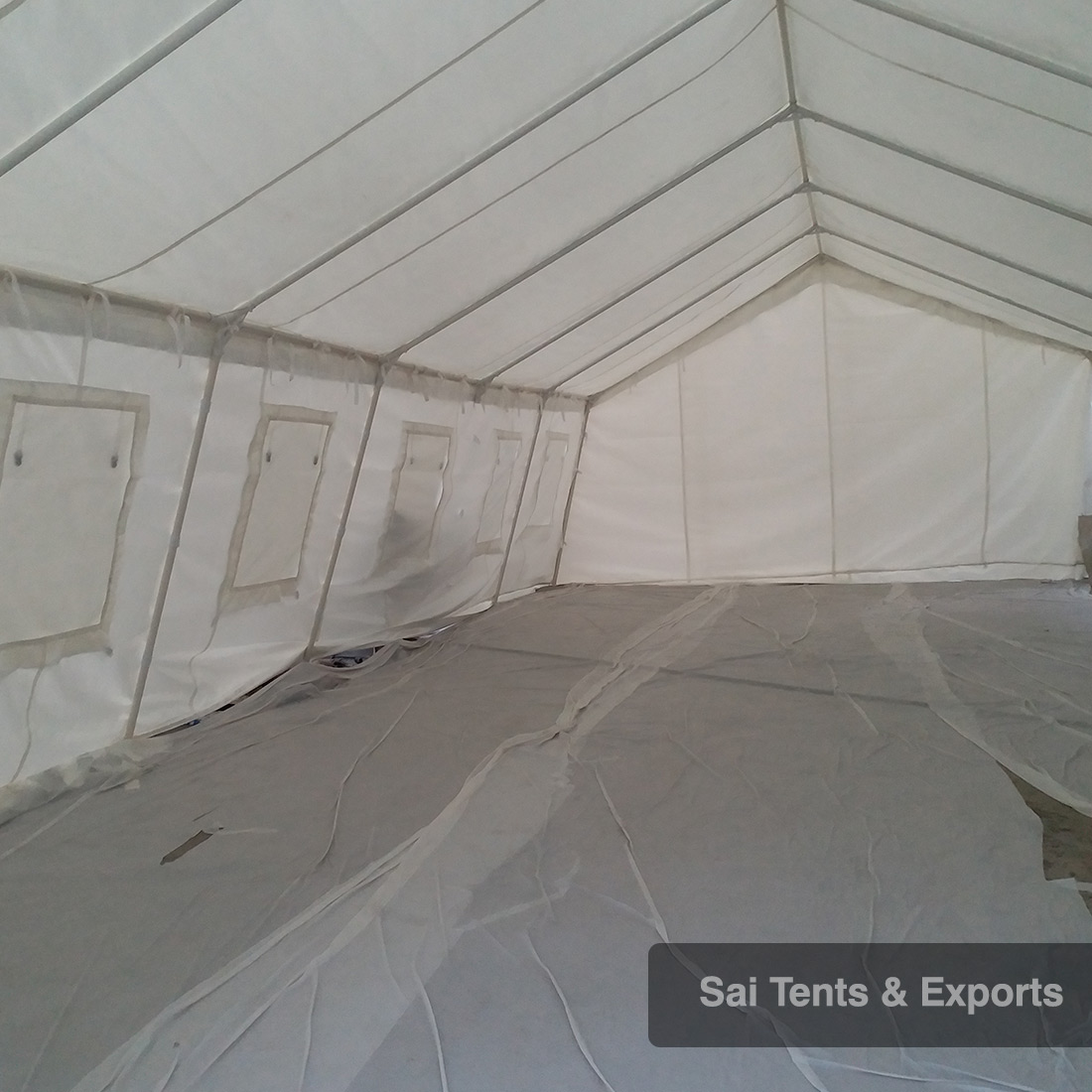 Similarly, Sai Tents & Exports also make disaster relief tents having four to six doors for good ventilation. We provide an option of door covers which can be pulled out to have a porch at the door openings. Inner space of tents is divided with fabrics to create private area. Special care is given that tent is not punctured or cut to avoid the leakage of rain water. Disaster relief tents can be defined as the general service tents, which care the easiest and quickest in making shift accommodation for the relief sites. The materials used in the construction of these tents are chosen and combined to perform at optimum strength to cost.