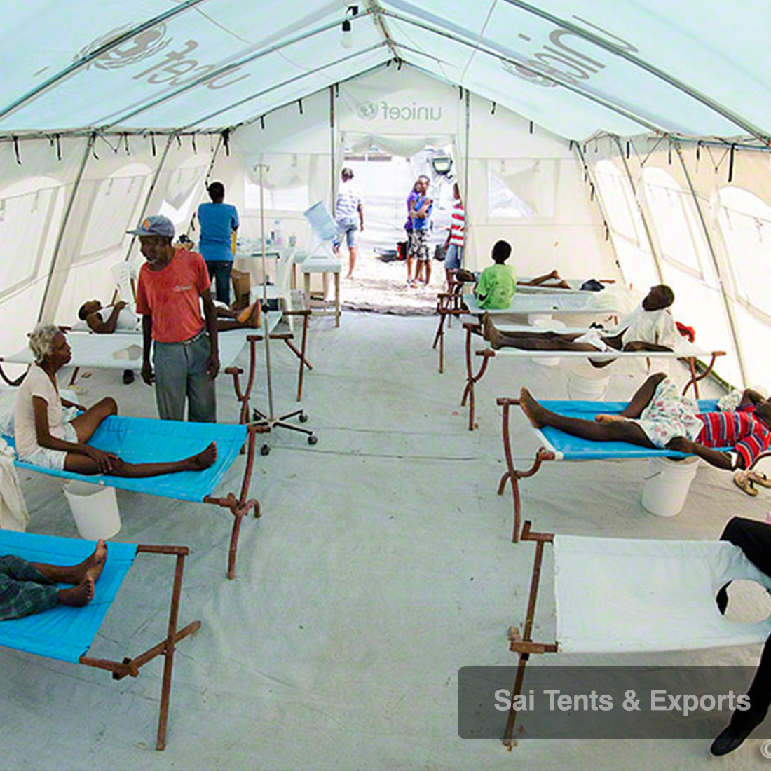 Sai Tents & Exports is capable to supply a huge amount of emergency Relief Tents in case of any natural calamity or other charitable events at any place. We also promise to reach our shipment as fast as required. Our emergency relief tents are made keeping in mind the weather condition and ground condition of natural calamity area so that these can be pitched easily to provide the maximum accommodation to the victims. Generally we provide four to six doors to these tents to ensure proper ventilation and spacious floor area with sufficient height. Basically, these tents are meant for the relief work during calamities.