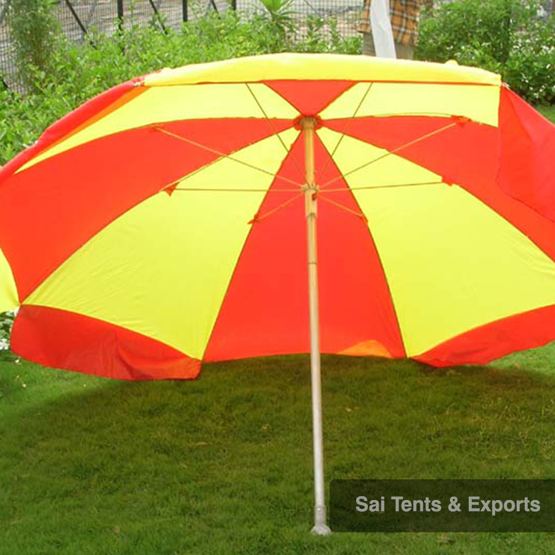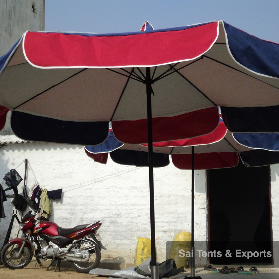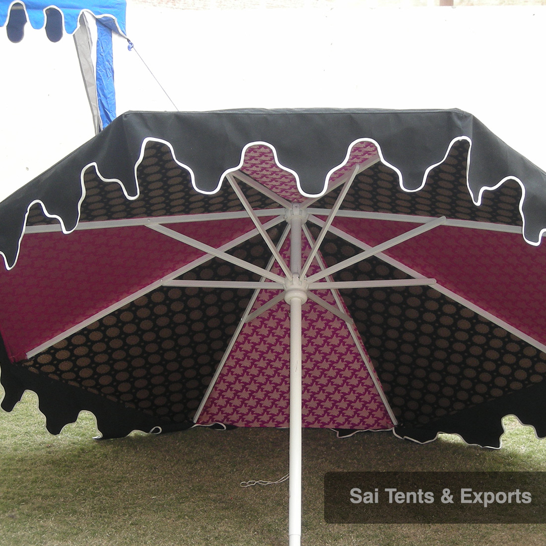 Sai Tents & Exports is the premier manufacturer, wholesale suppliers of Garden Umbrellas and Beach Umbrellas. Our umbrellas are very colourful, Indian traditional embroidery, durable and easy to install which give a very attractive look. We also make promotional umbrellas of attractive look as per the requirement of customer.