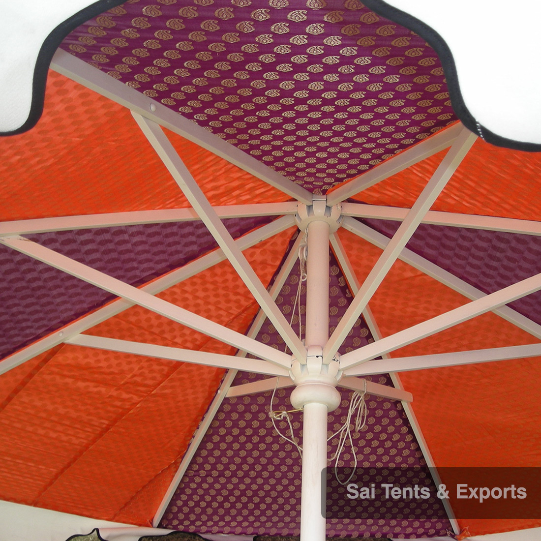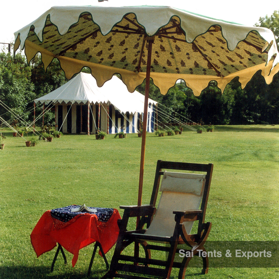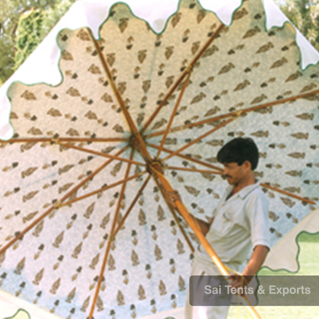 Sai Tents & Exports is the premier manufacturer, wholesale suppliers of Garden Umbrellas and Beach Umbrellas. Our umbrellas are very colourful, Indian traditional embroidery, durable and easy to install which give a very attractive look. We also make promotional umbrellas of attractive look as per the requirement of customer.